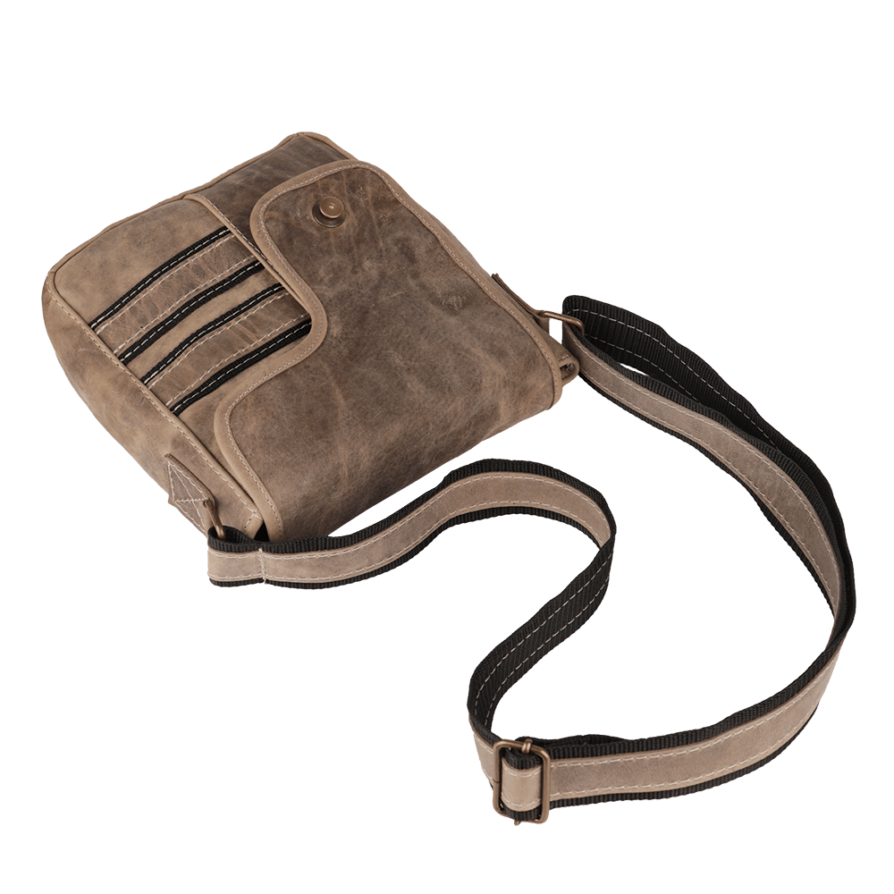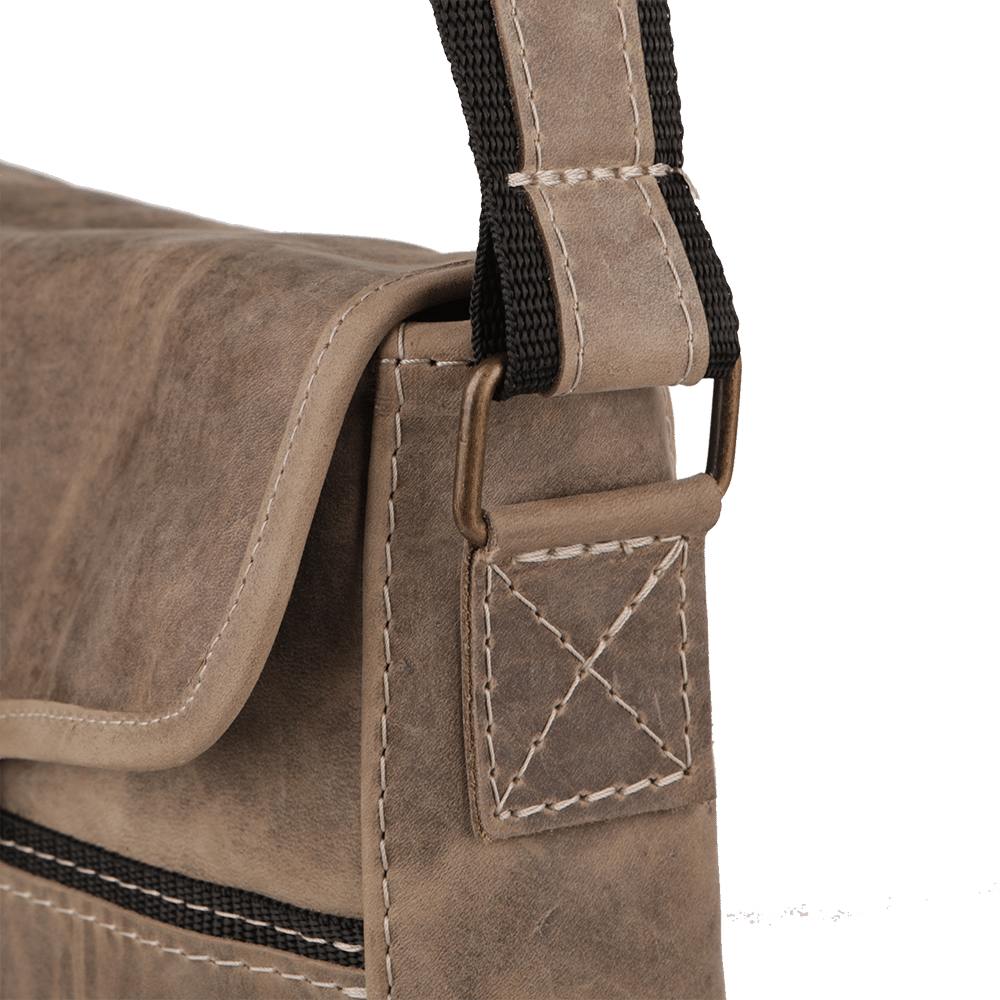 - Stabile Trageriemen aus breitem Gurtband mit aufgenähtem Leder