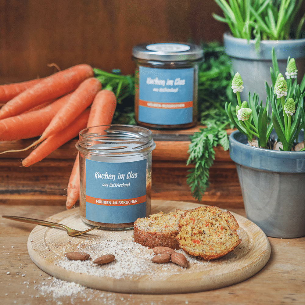 So schmeckt der Frühling. Der fluffige Möhren-Nusskuchen ist im Glas gebacken und kann direkt verputzt werden. In Scheiben geschnitten, mit Puderzucker bestäubt, ein paar Früchten und einem Häubchen Sahne oder Frischkäse wird daraus ein hübsch anzusehendes und sehr leckeres Dessert.