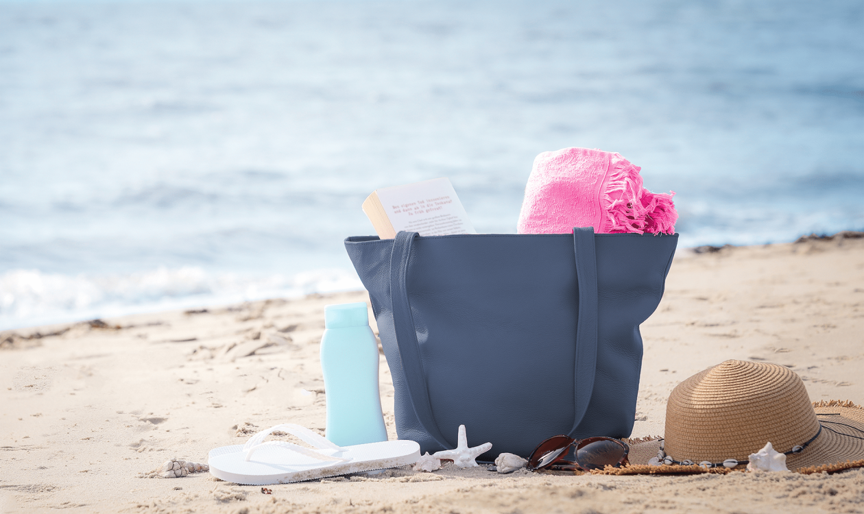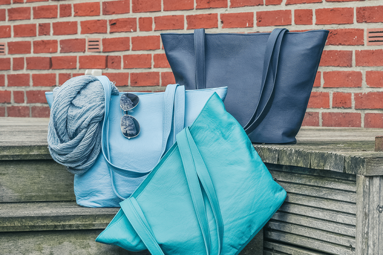 Für einen maritimen Auftritt. Unsere Damentaschen, beispielsweise „Die Großartige“ bekommst du in tollen Blautönen.